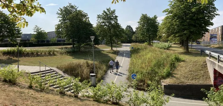 Den Grønne Akse er en meget anvendt cykel- og gangsti, og arealerne udgør et lokalt parkområde. Med etableringen af den nye og varierede beplantning øger vi både nytte- og brugsværdien for nærområdets beboere, de kommende brugere af Rådhus Hjortespring og skolens elever.