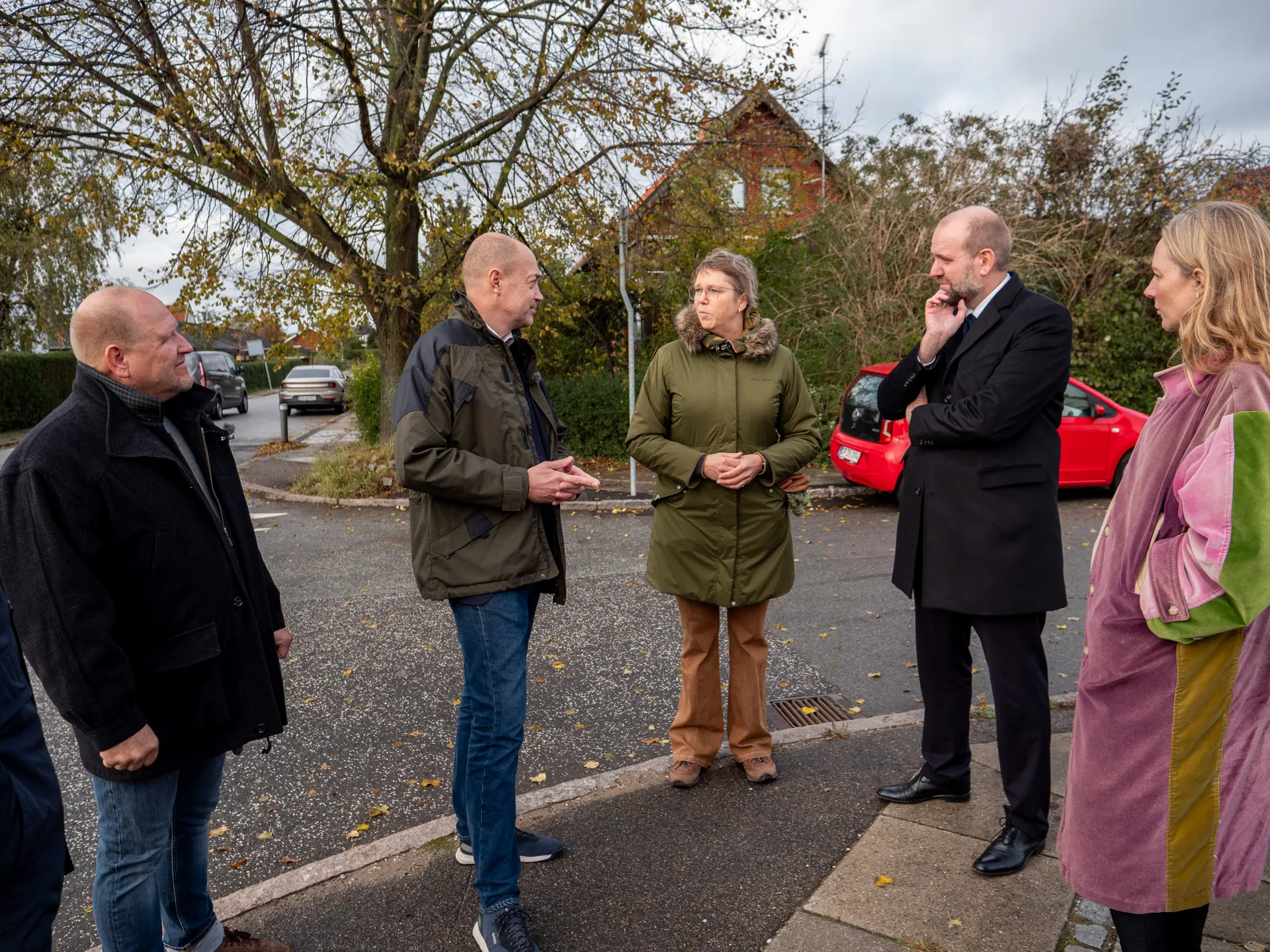 Miljøminister Magnus Heunicke, miljoordfører Lea Wermelin samt formanden for Hofor, Susanne Juhl er en del af det følge, der er troppet op for at høre om udfordringerne med stigende grundvand.