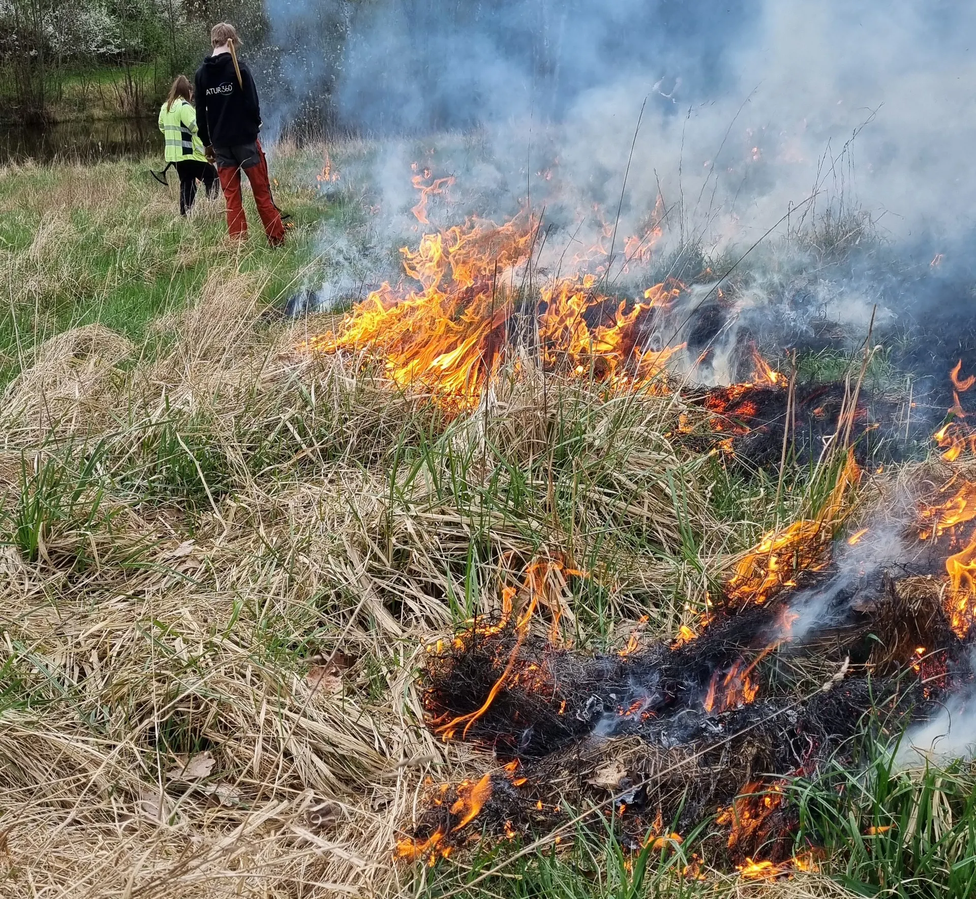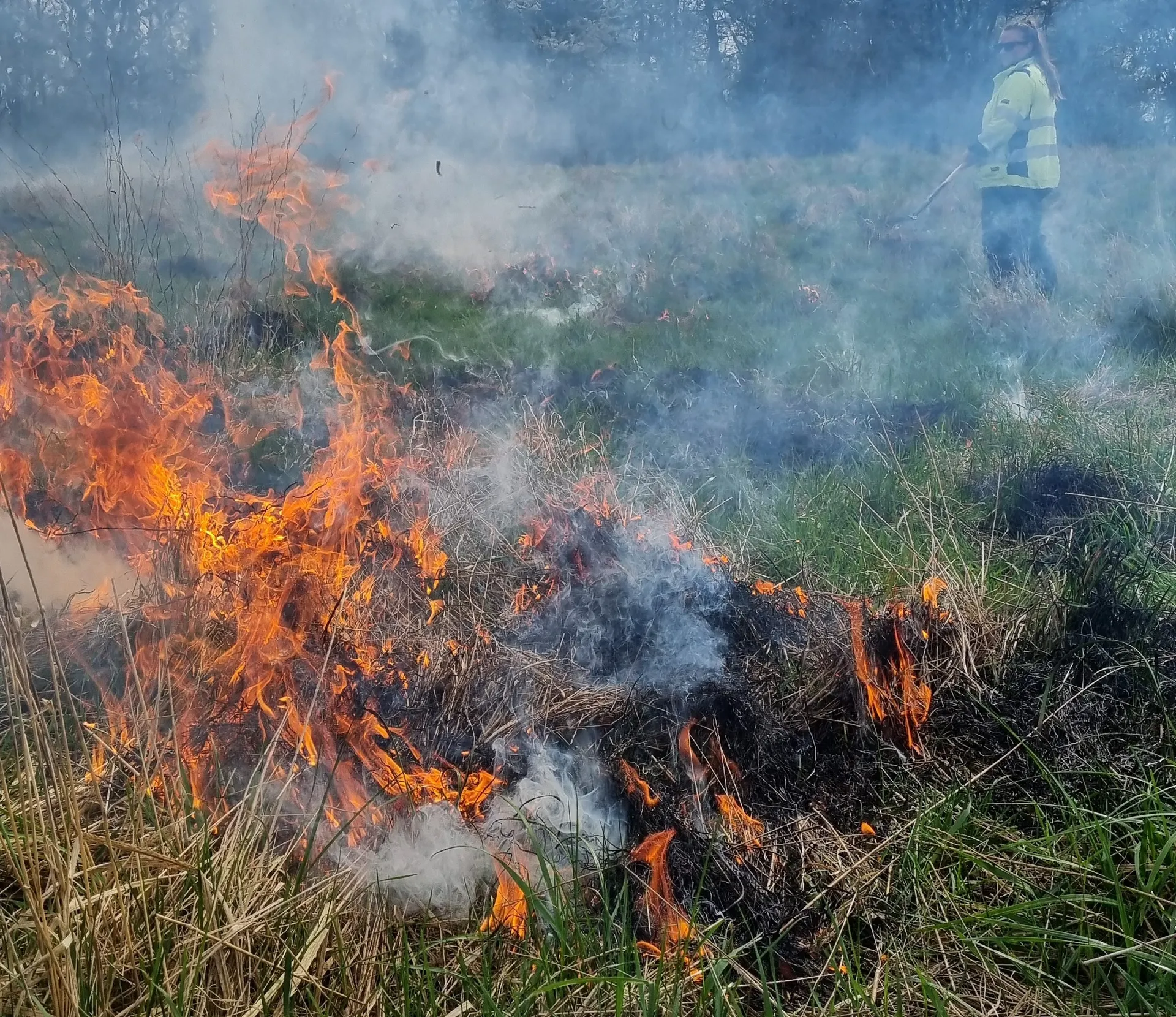 Johanne Salomon Bak, der er der er biolog og partner i Natur360, forklarer, at det har været svært finde et tidspunkt for afbrænding i det omskiftelige forår med en masse nedbør.