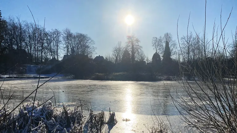 Herlev Kommune måler løbende tykkelsen på isen, og når den er mere end 13 cm tyk, opsætter vi skilte med teksten: "Færdsel på isen tilladt".
