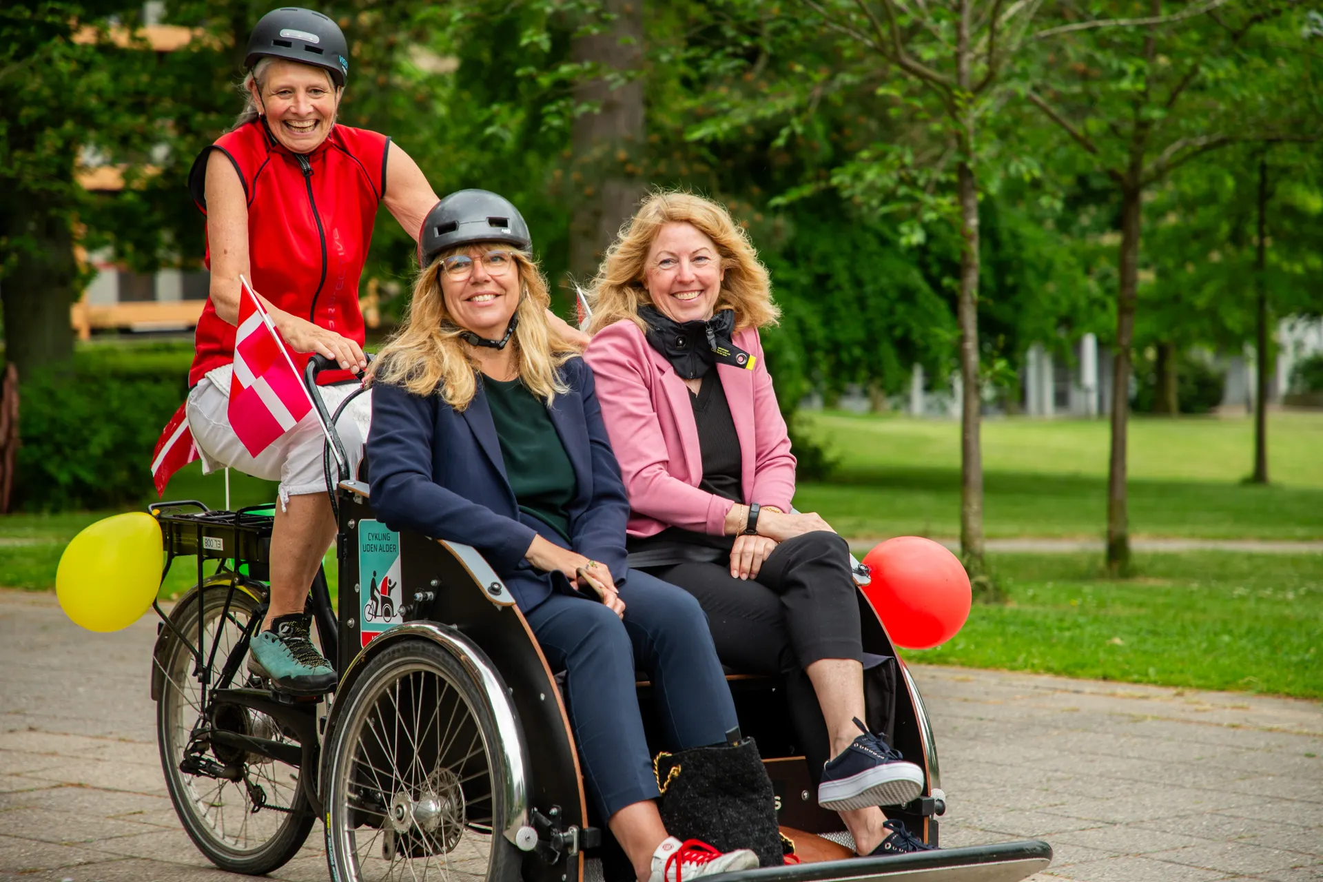 Flere end 100 fremmødte beboere og frivillige hørte først på borgmester Thomas Gyldal Petersen og Søren Steffensen fra Cykling Uden Alder, inden der var mulighed for at komme ud og prøve cyklerne af. Enten som ”pilot” eller som passager.