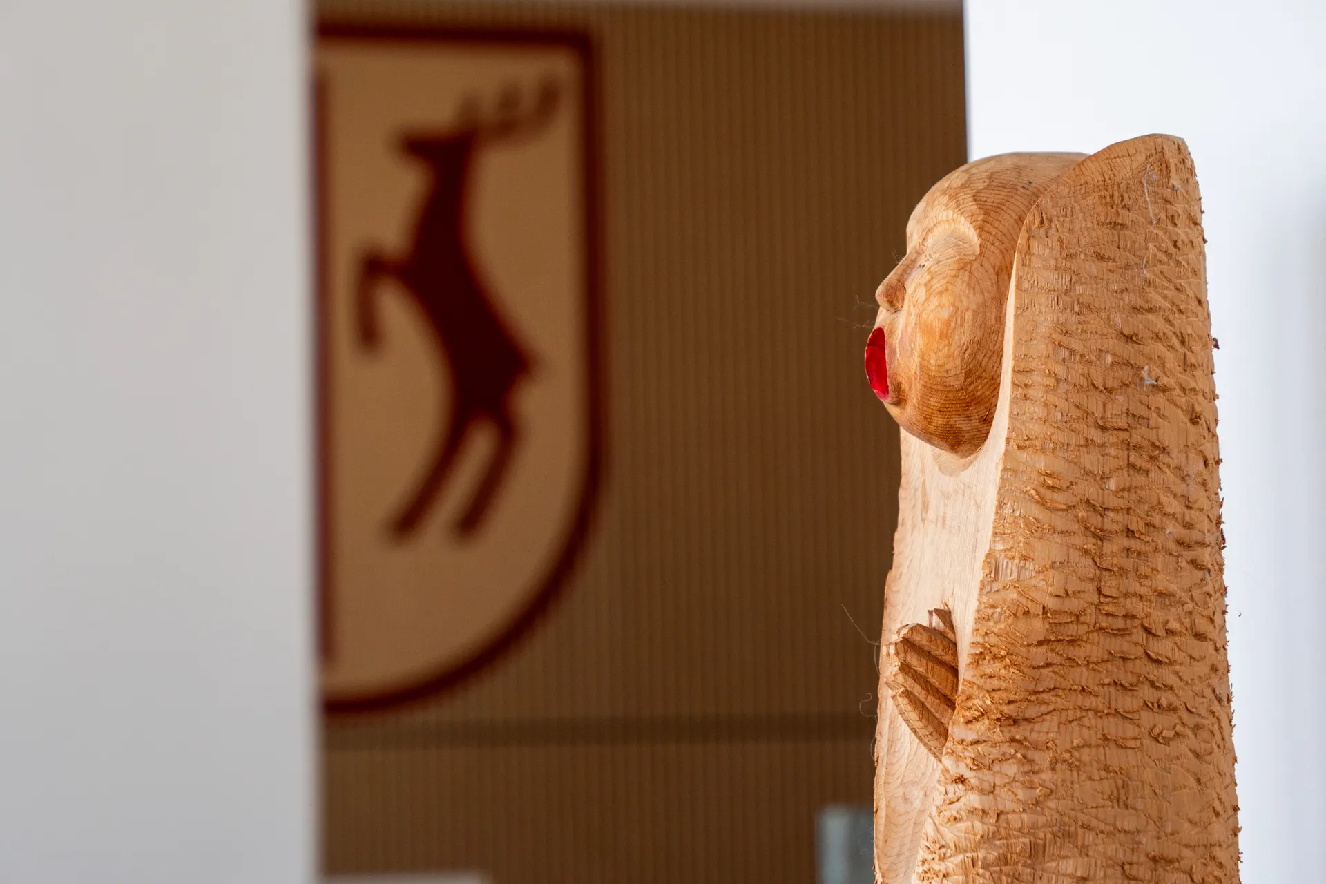 Her vil den arkitekttegnede vindeltrappe lede op til en stor udformning af Herlevs karakteristiske byvåben.