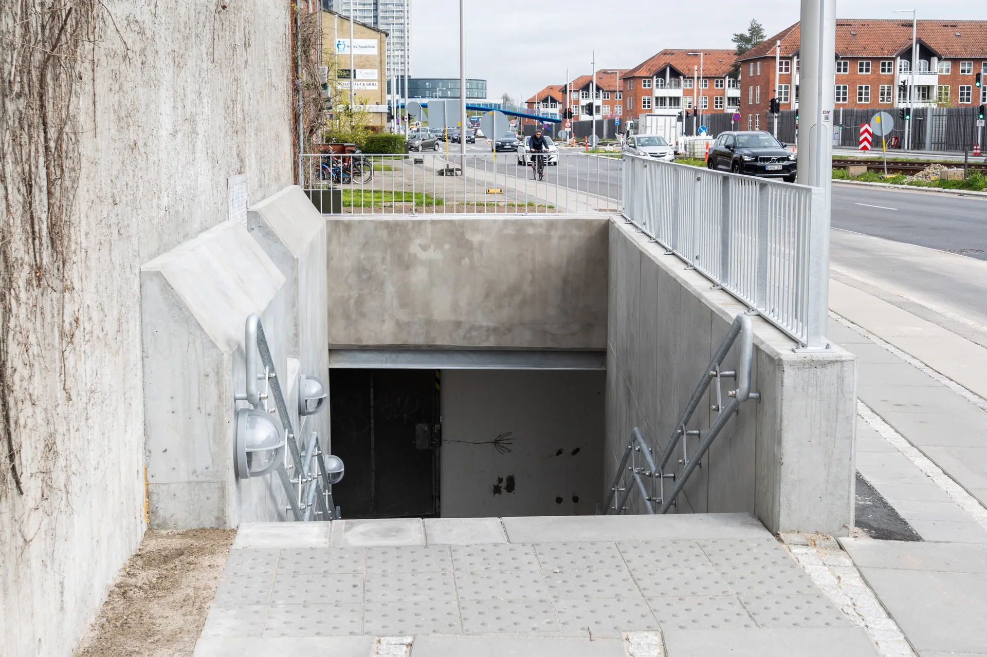 Husk at det ikke er tilladt at cykle i tunellen, men man er selvfølgelig velkommen til at trække sin cykel, og der er ramper som cyklen kan trækkes op ad.
