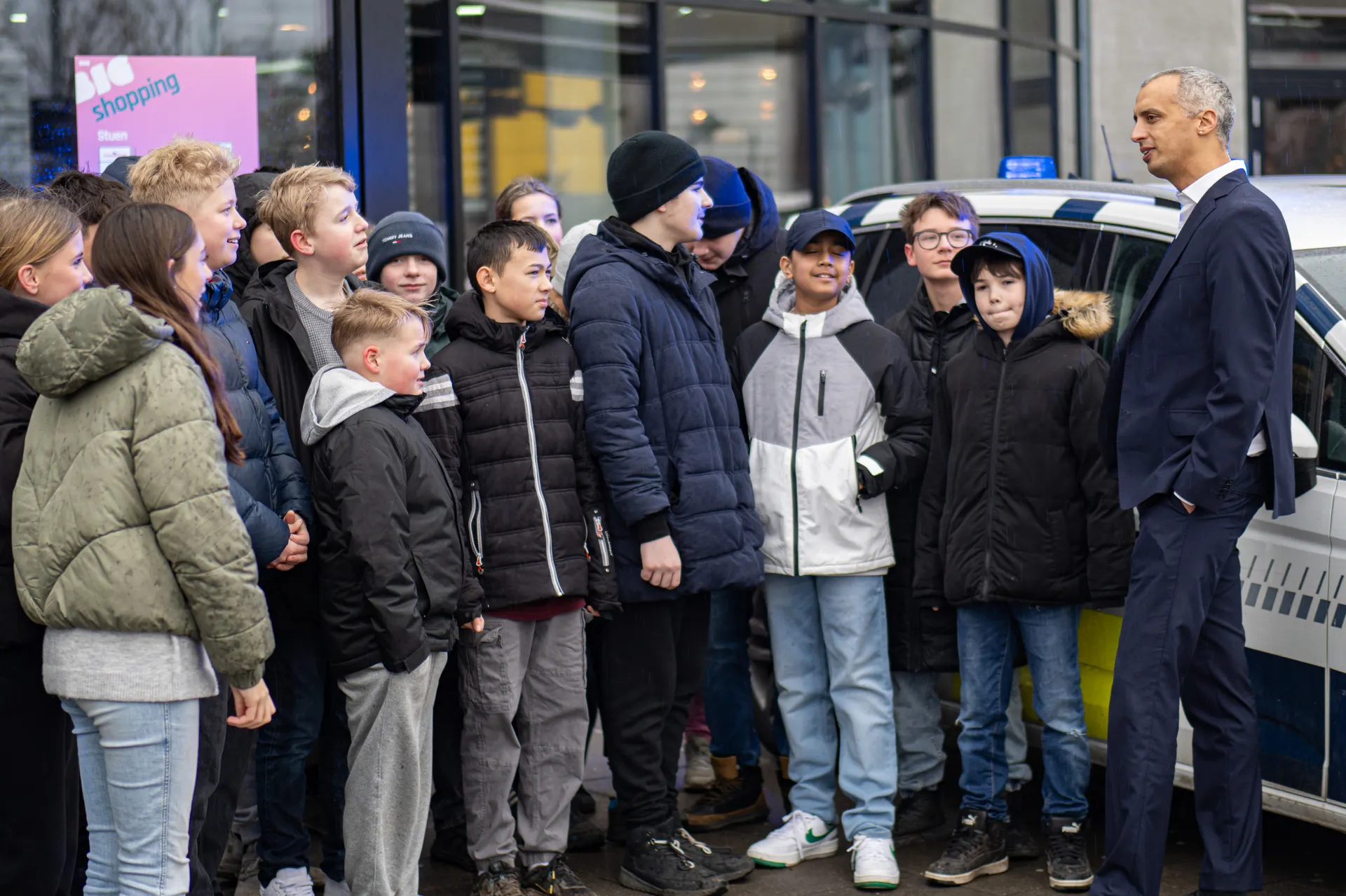 De var alle kommet for at takke skolepatruljerne for deres indsats med at sikre skolevejen for de andre elever på deres skoler.